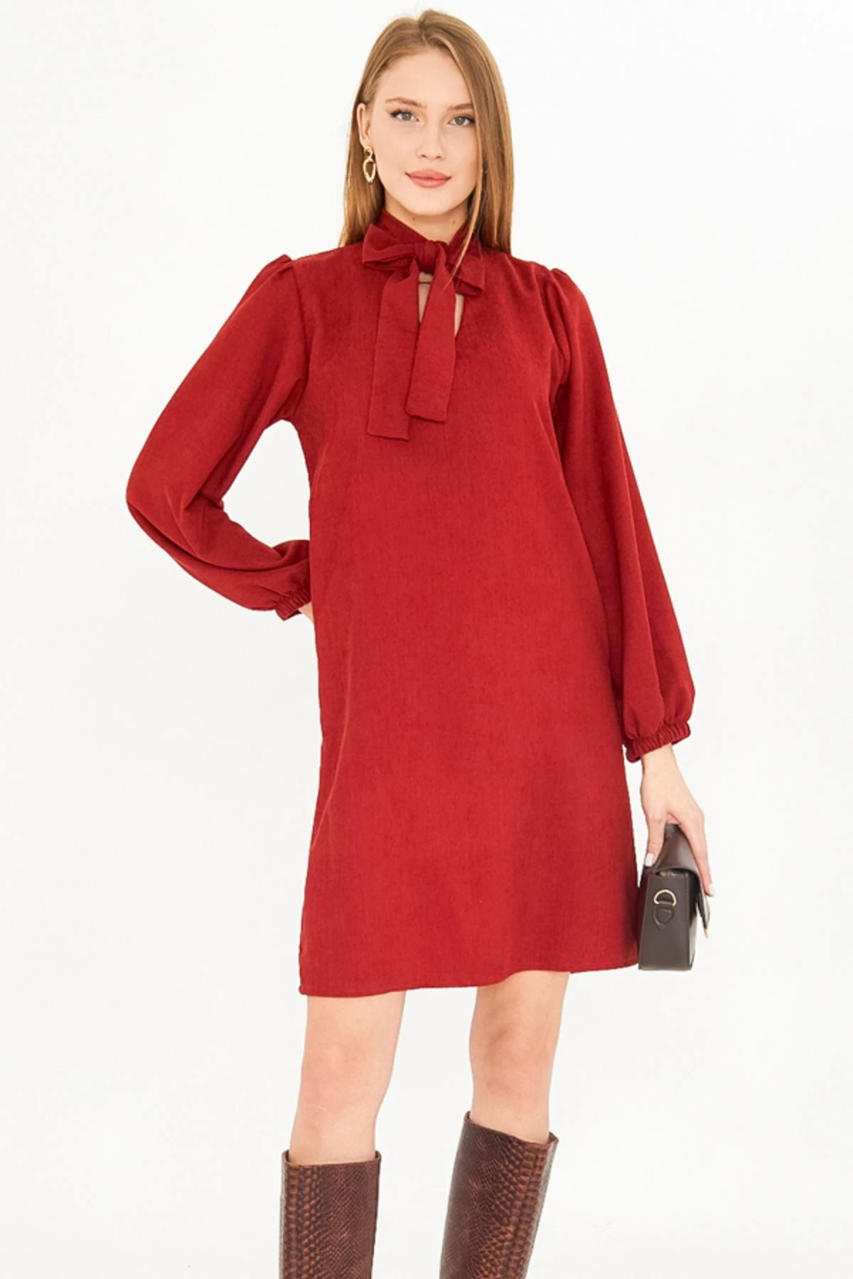 فستان نسائي ميدي كيوت ومريح بقماش مودال وياقة بولو مع شقين لستايل عصري وحركة سهلة يومية.