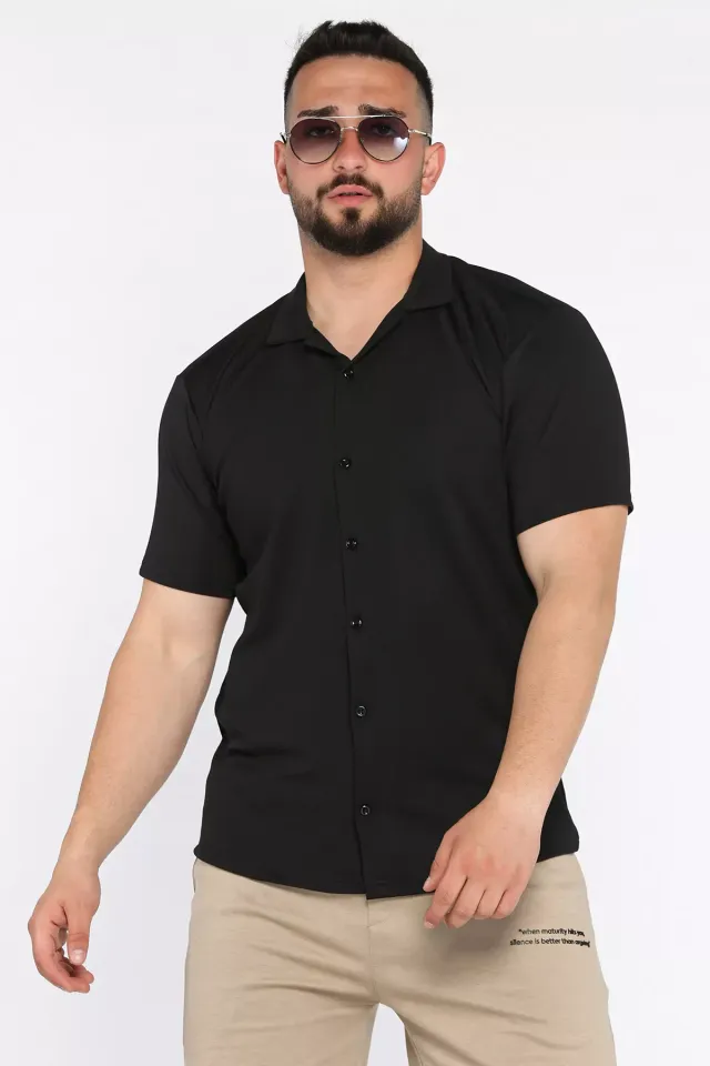 قميص رجالي كاجوال بأكمام طويلة مجعدة وقصة مريحة وياقة ماندرين وأزرار أمامية