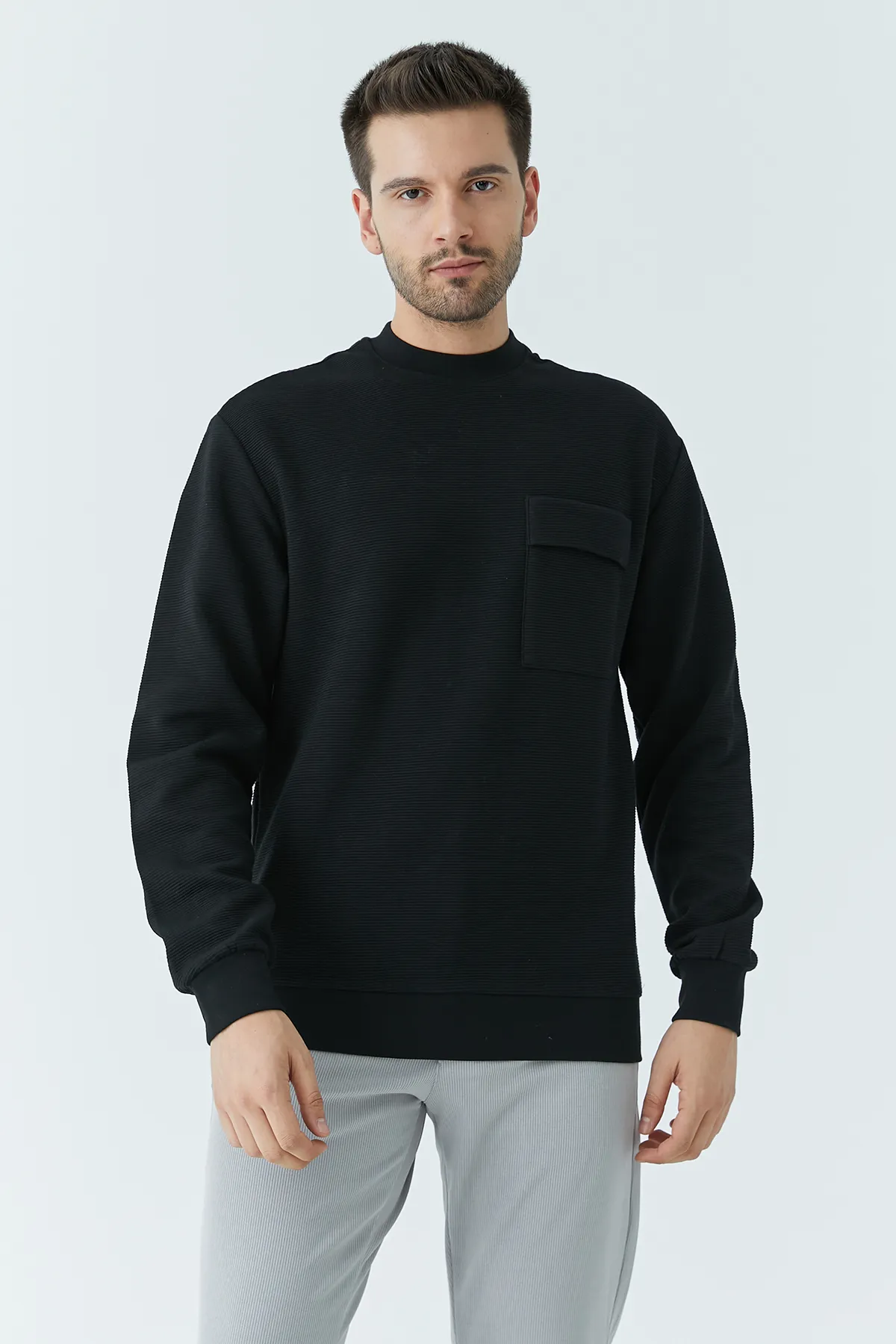 سويت شيرت رجالي كاجوال منقوش بأكمام طويلة وياقة دائرية وأزرار - Beyond Store