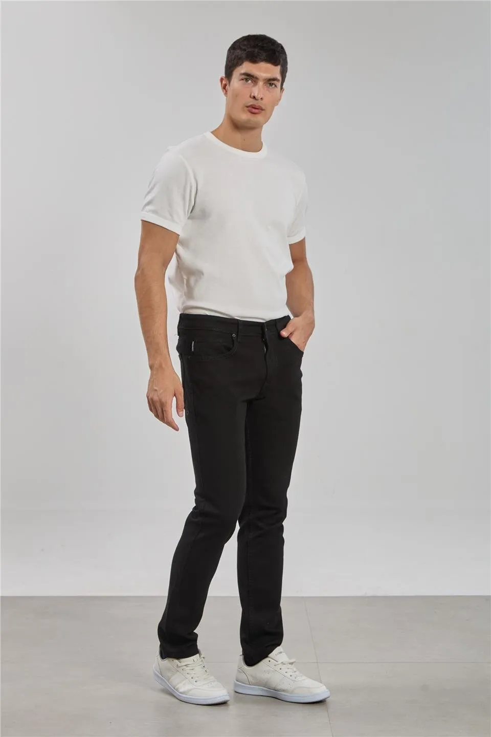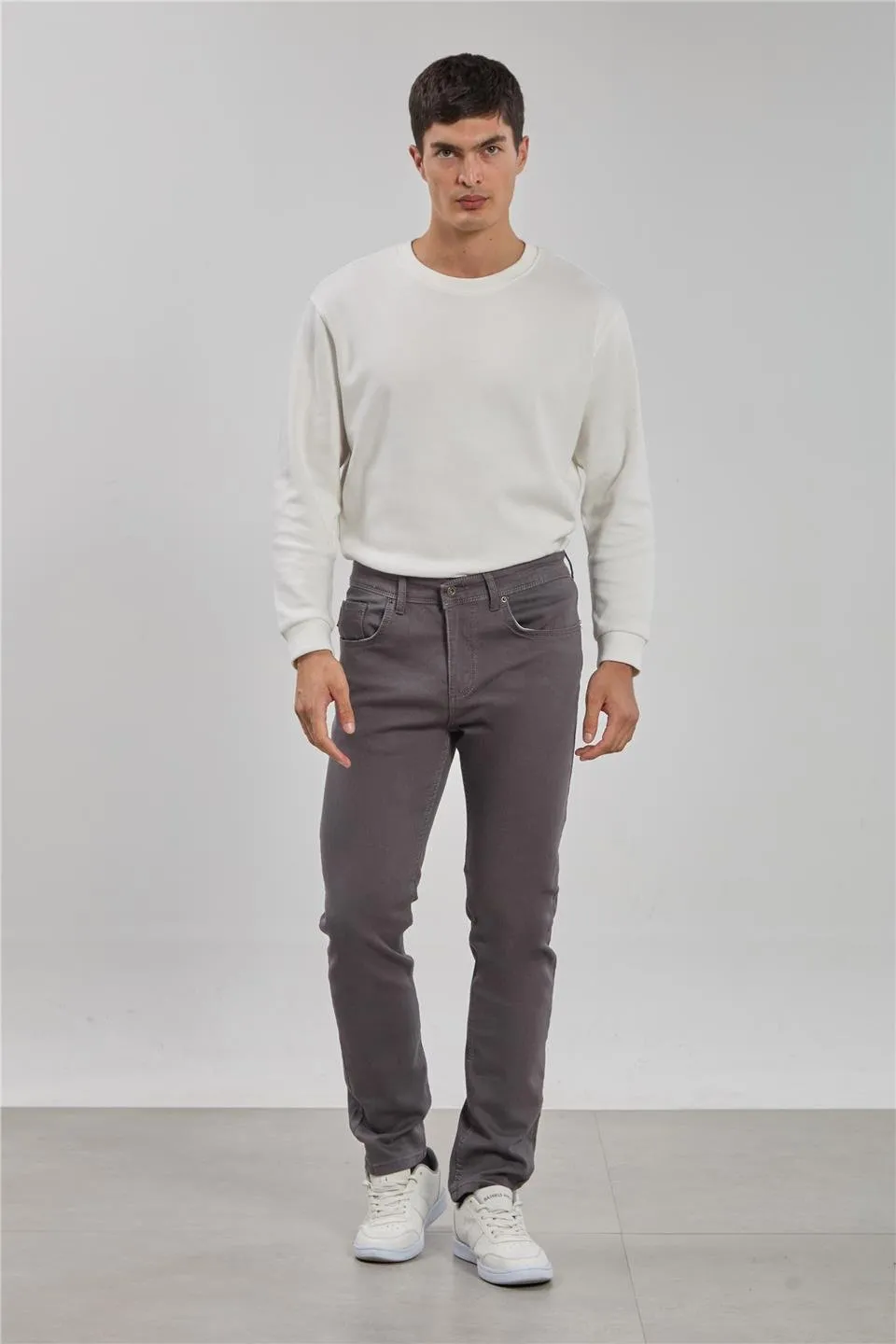 بنطال رجالي كاجوال سادة بقصة ضيقة وخصر عادي وأزرار - Beyond Store
