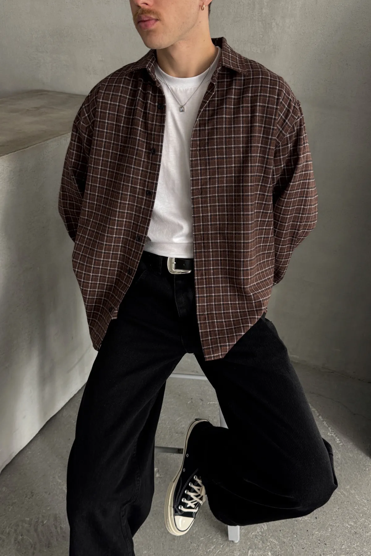 قميص رجالي كاجوال سادة بأكمام طويلة بقصة مريحة مع أزرار أمامية