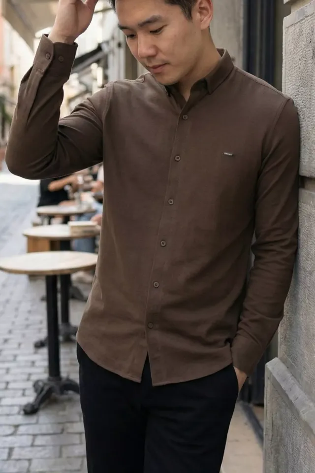 قميص رجالي كاجوال سادة بأكمام طويلة بقصة مريحة مع أزرار أمامية - Beyond Store