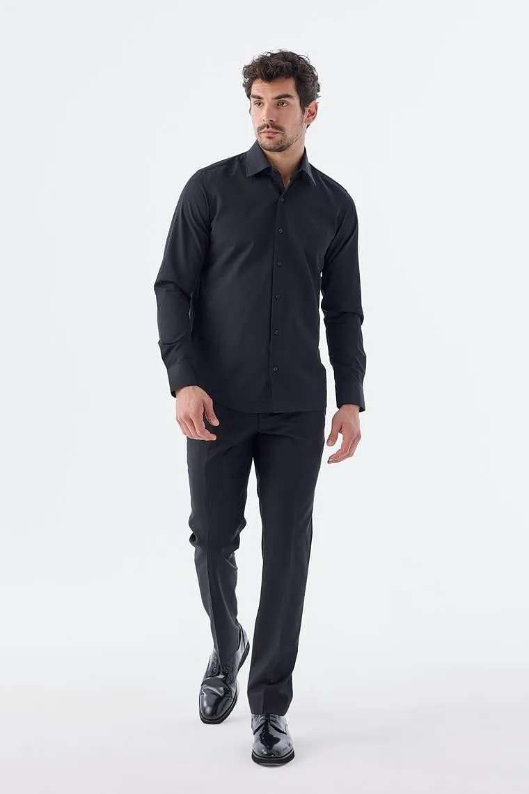 قميص رجالي كاجوال سادة بأكمام طويلة بقصة مريحة مع أزرار أمامية