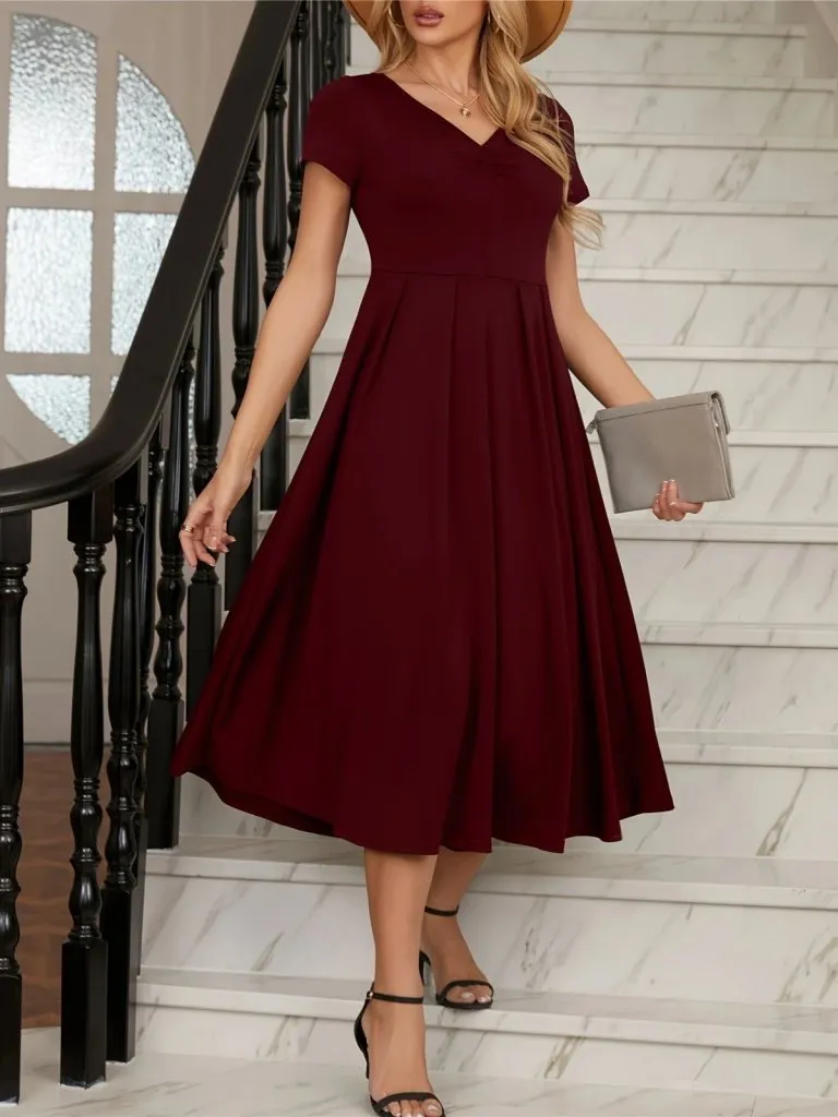 فستان نسائي قصير مجعد كاجوال بياقة مربعة