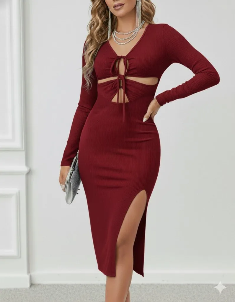 فستان نسائي محبوك بياقة عالية وقصة ضيقة - Beyond Store