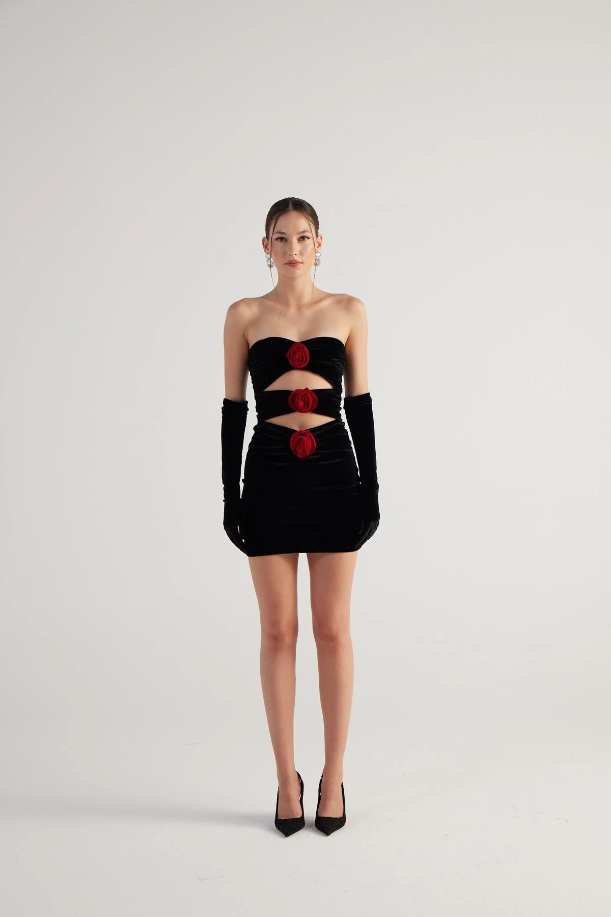 مقاسات الموديل: الطول: 176 سم، الصدر: 90 سم، الخصر: 63 سم، الوركين: 94 سم