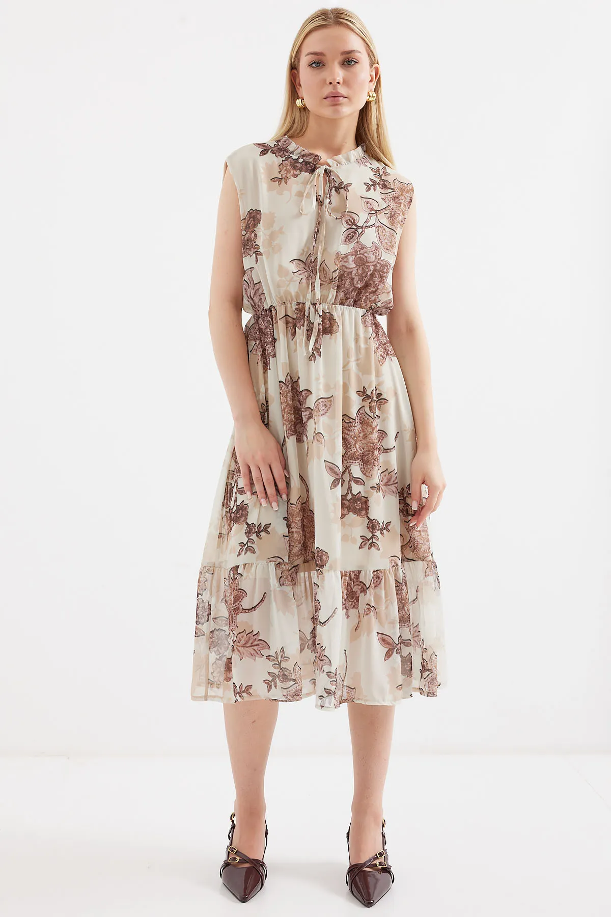 مقاسات الموديل: الطول: 176 سم، الصدر: 90 سم، الخصر: 63 سم، الوركين: 94 سم