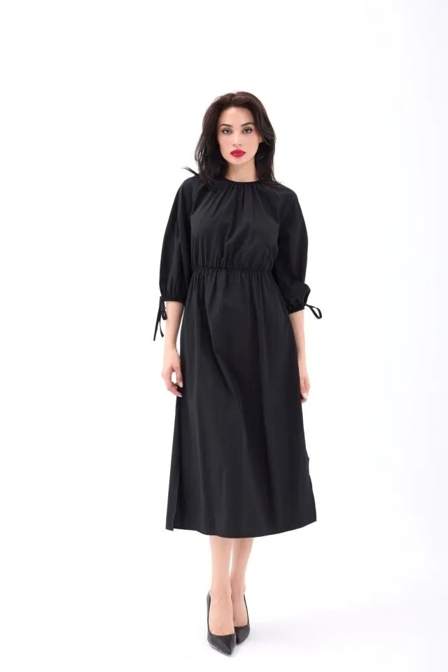 فستان نسائي مخطط بأكمام قصيرة وحزام - Beyond Store