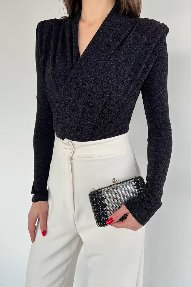 بلوزو باكمام بالونية طويلة برقبة دائرية بتفاصيل مطرزة