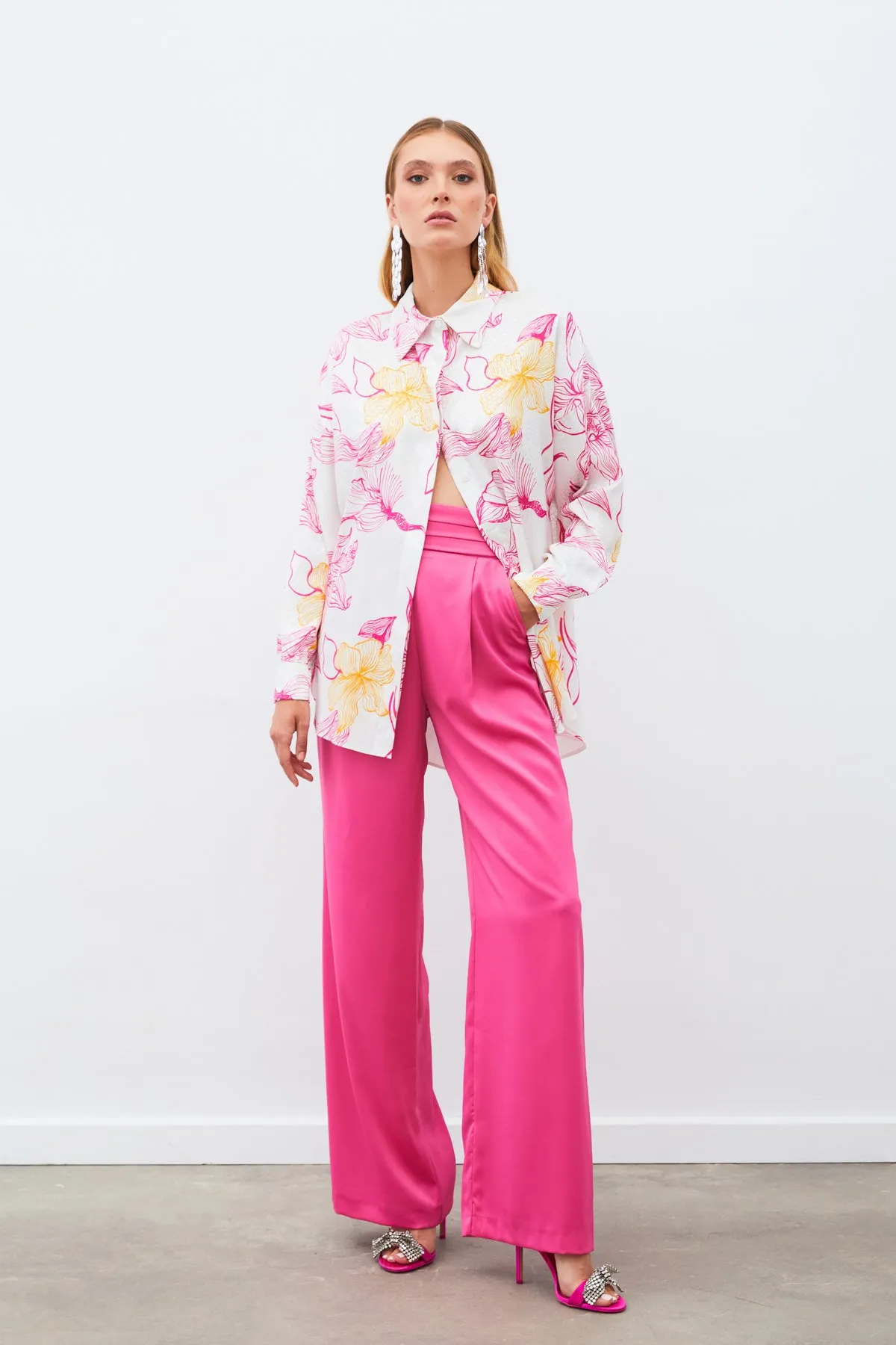 مقاسات الموديل: الطول: 176 سم، الصدر: 90 سم، الخصر: 63 سم، الوركين: 94 سم