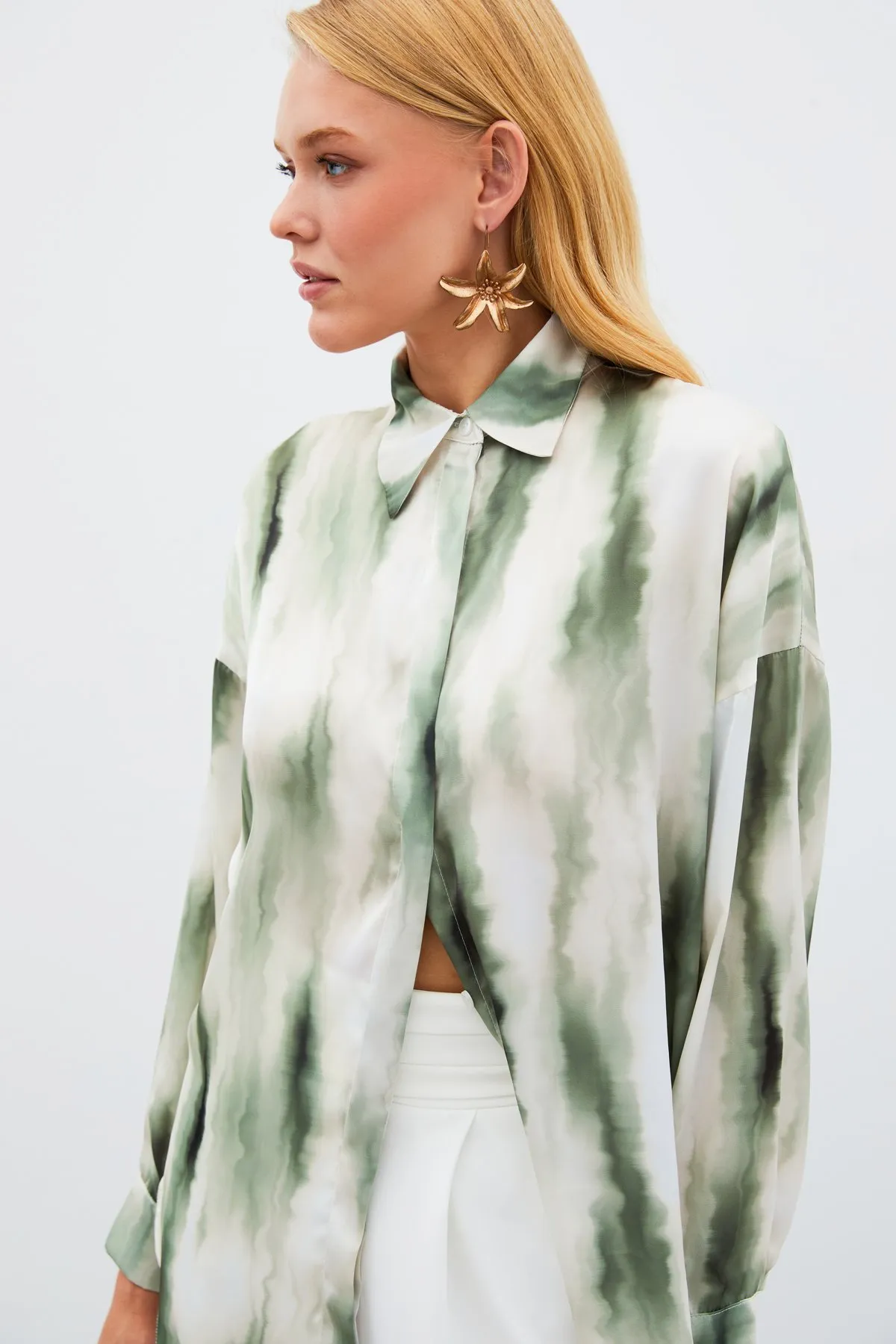 قميص كتان مخطط كبير الحجم للنساء - Beyond Store