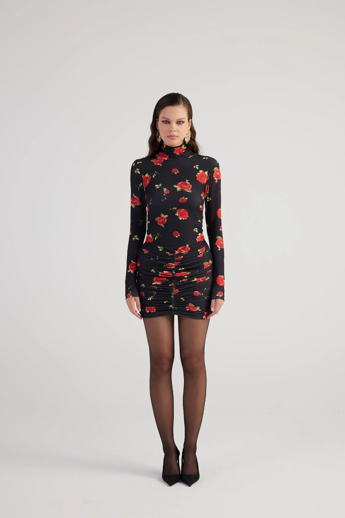 فستان نسائي قصير منقوش بحزام بدون أكمام