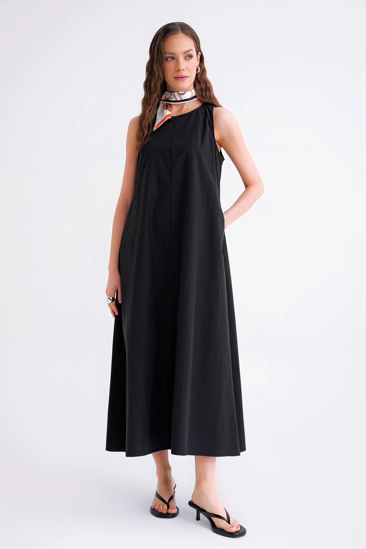 مقاسات الموديل: الطول: 176 سم، الصدر: 90 سم، الخصر: 63 سم، الوركين: 94 سم