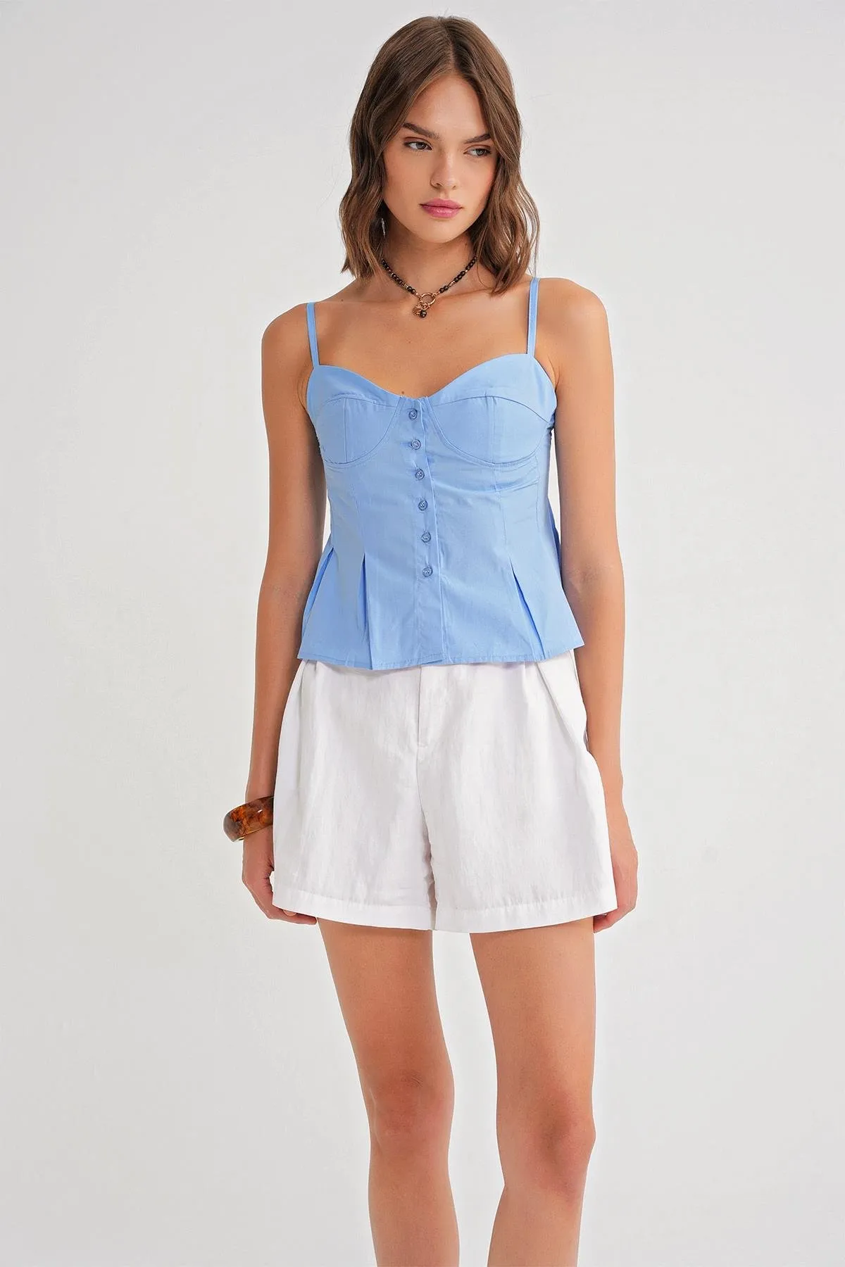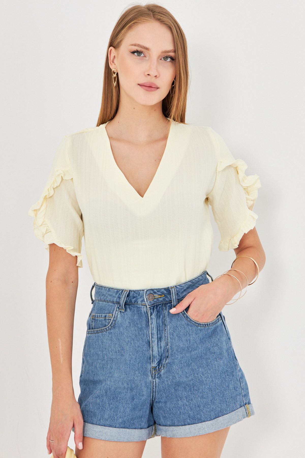 بلوزة كاجوال مضلعة بياقة عالية وقصّة مريحة