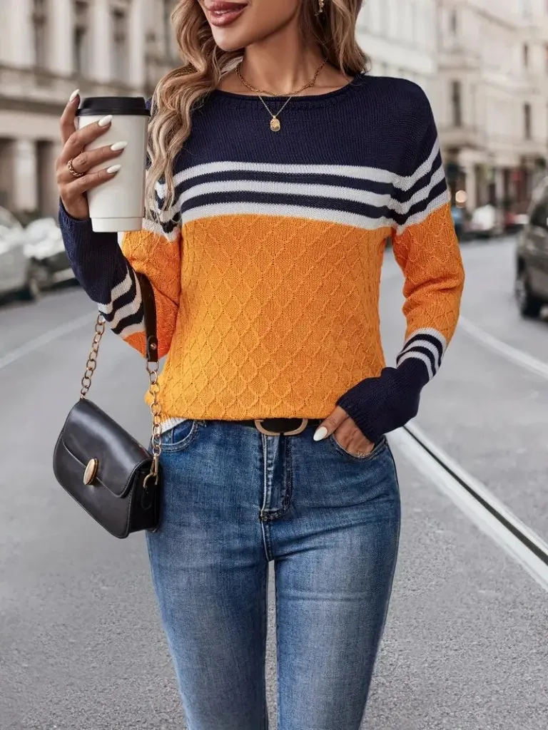سترة كاجوال مخططة بأكمام طويلة ورقبة دائرية وقصّة مريحة