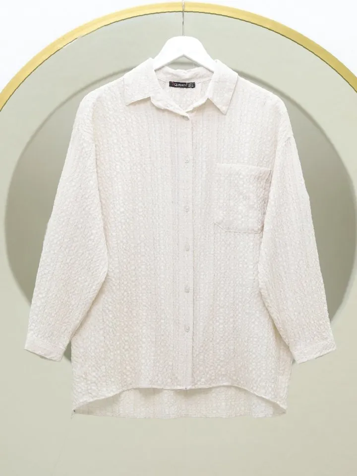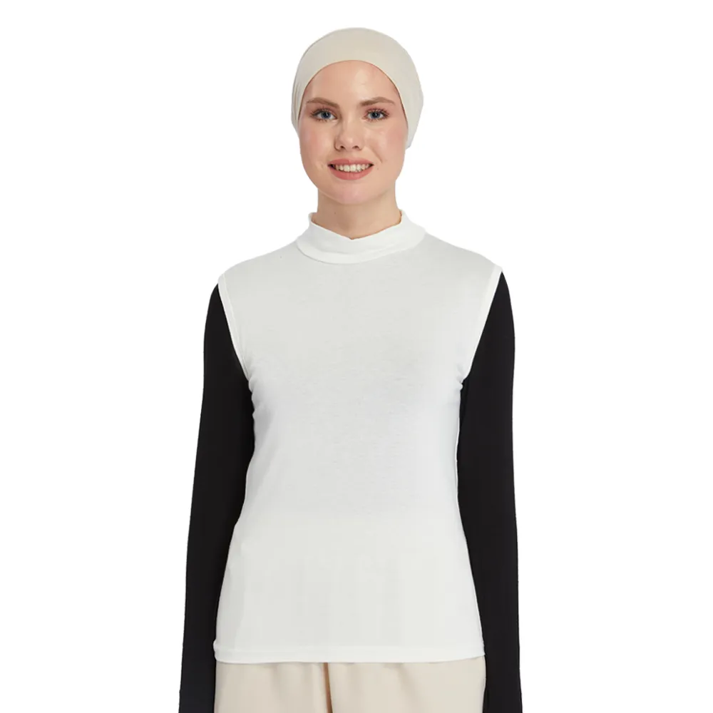 تونيك محبوك مخطط بياقة عالية وأكمام طويلة للنساء - Beyond Store